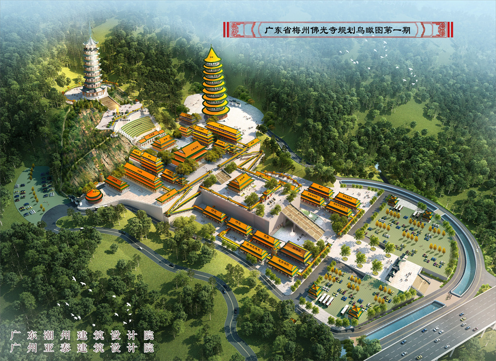 筹建中项目有:山门、天王殿及其附层,大雄宝殿及附层,佛光塔等,即按总体规划方案建造。